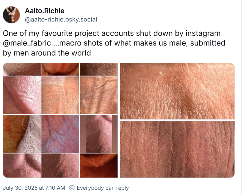 He shows his art and also reposts a lot of other artists. He is not longer on Instagram. He is yet another victim of the Meta Massacre of Gay artists.